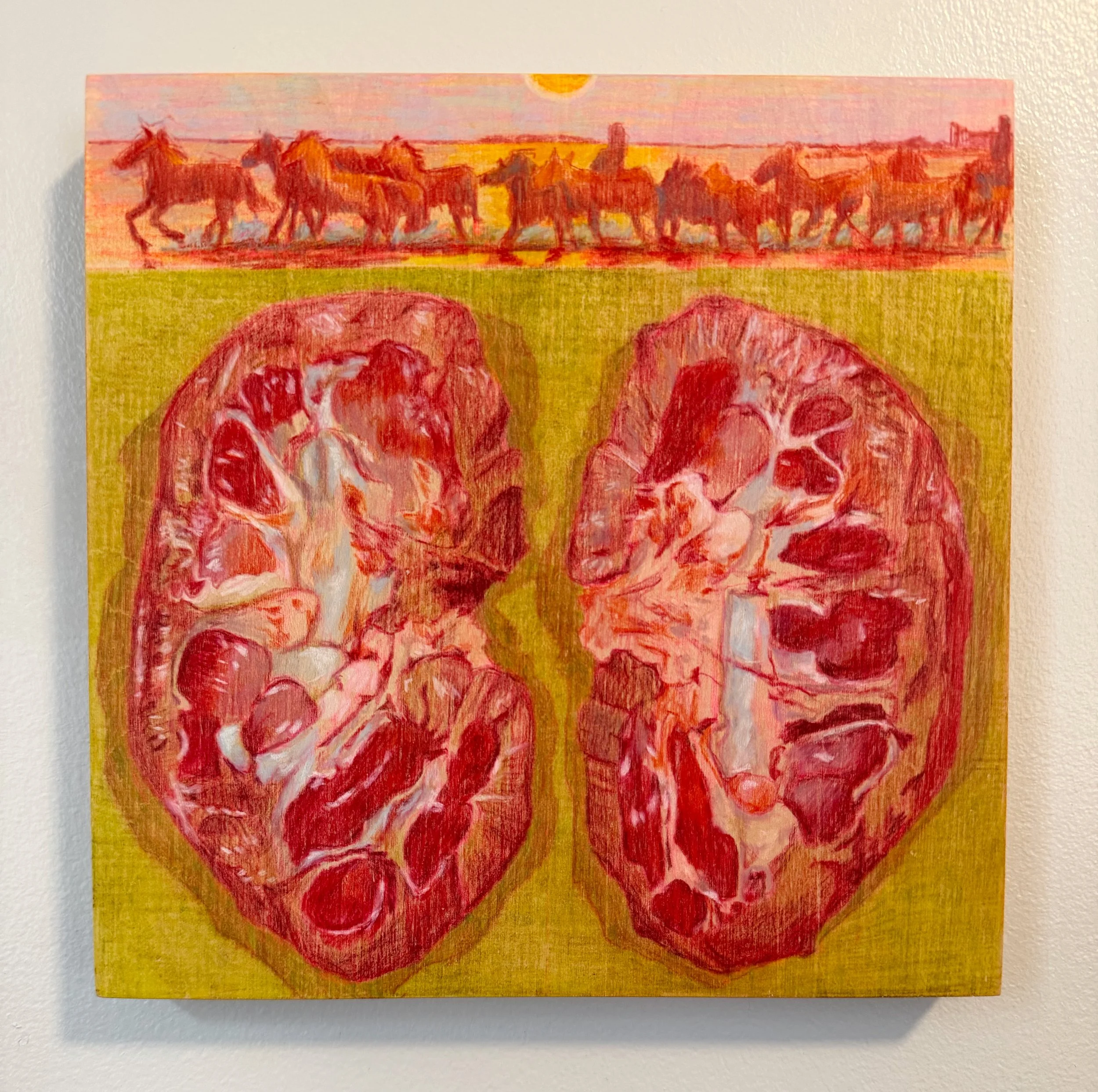 I Can’t Stop Running, 2026, colored pencil on cradled wood board, 8” x 8”