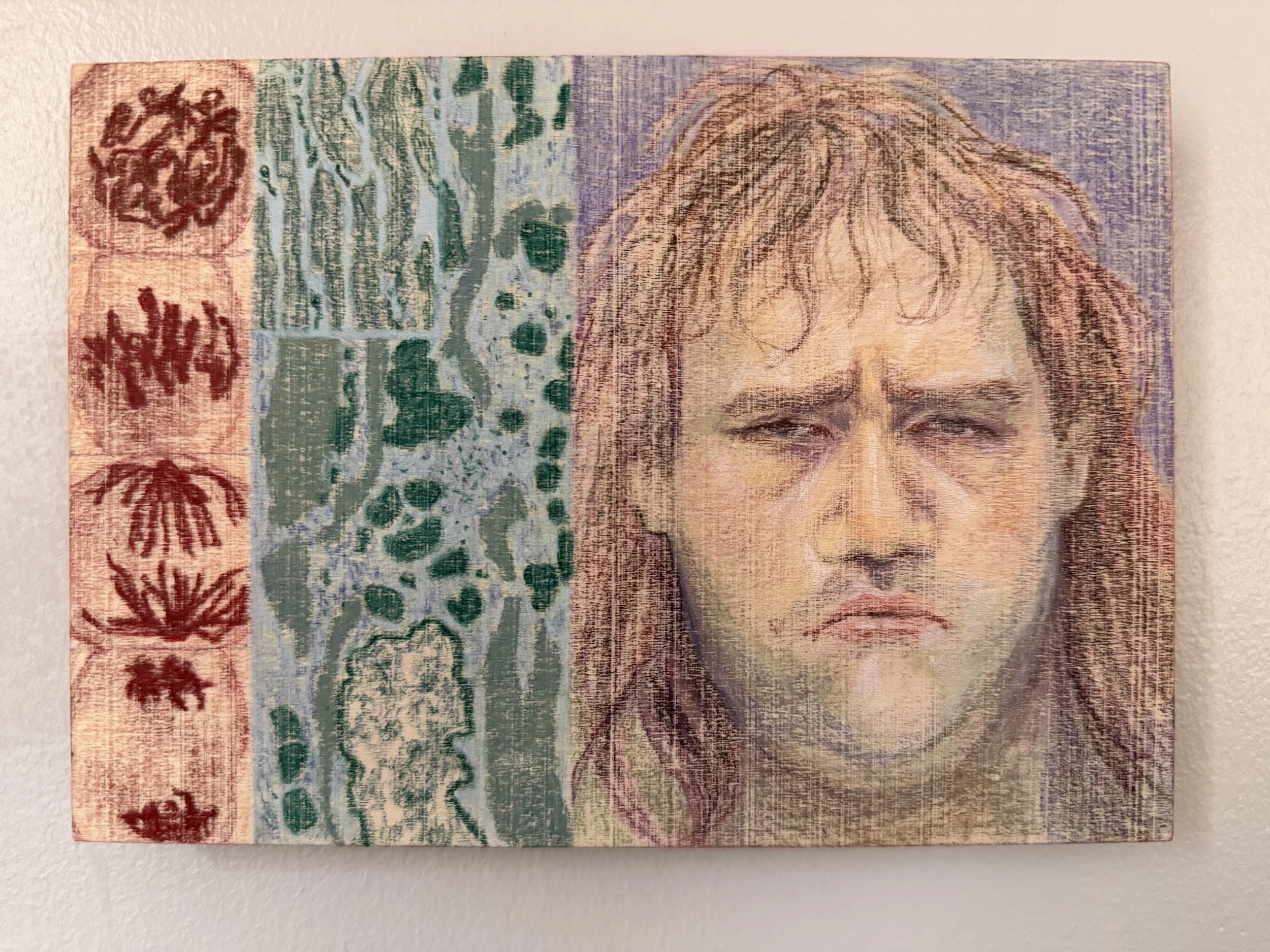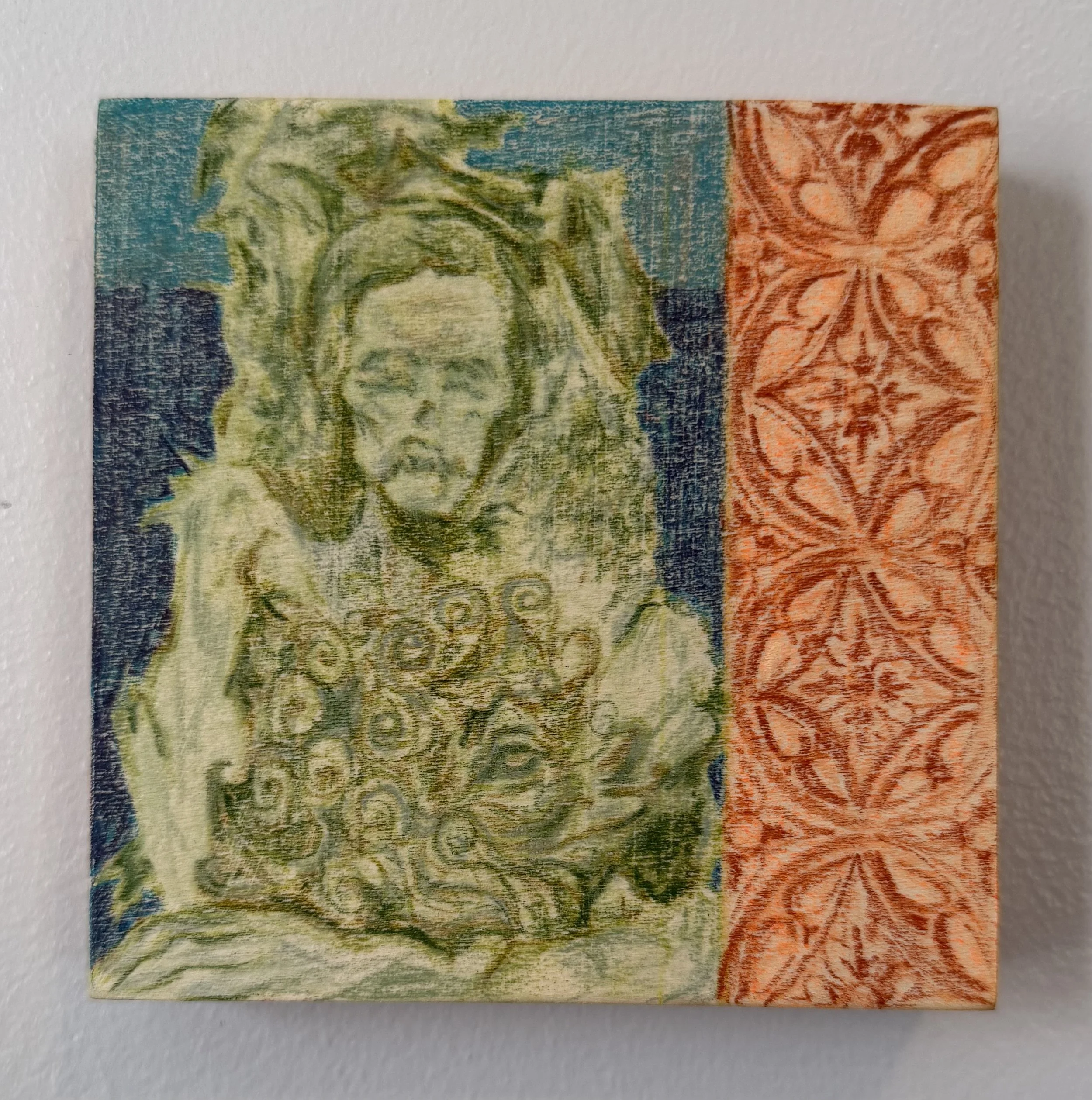 The Marburg Male, 2025, colored pencil on cradled wood board, 6” x 6”