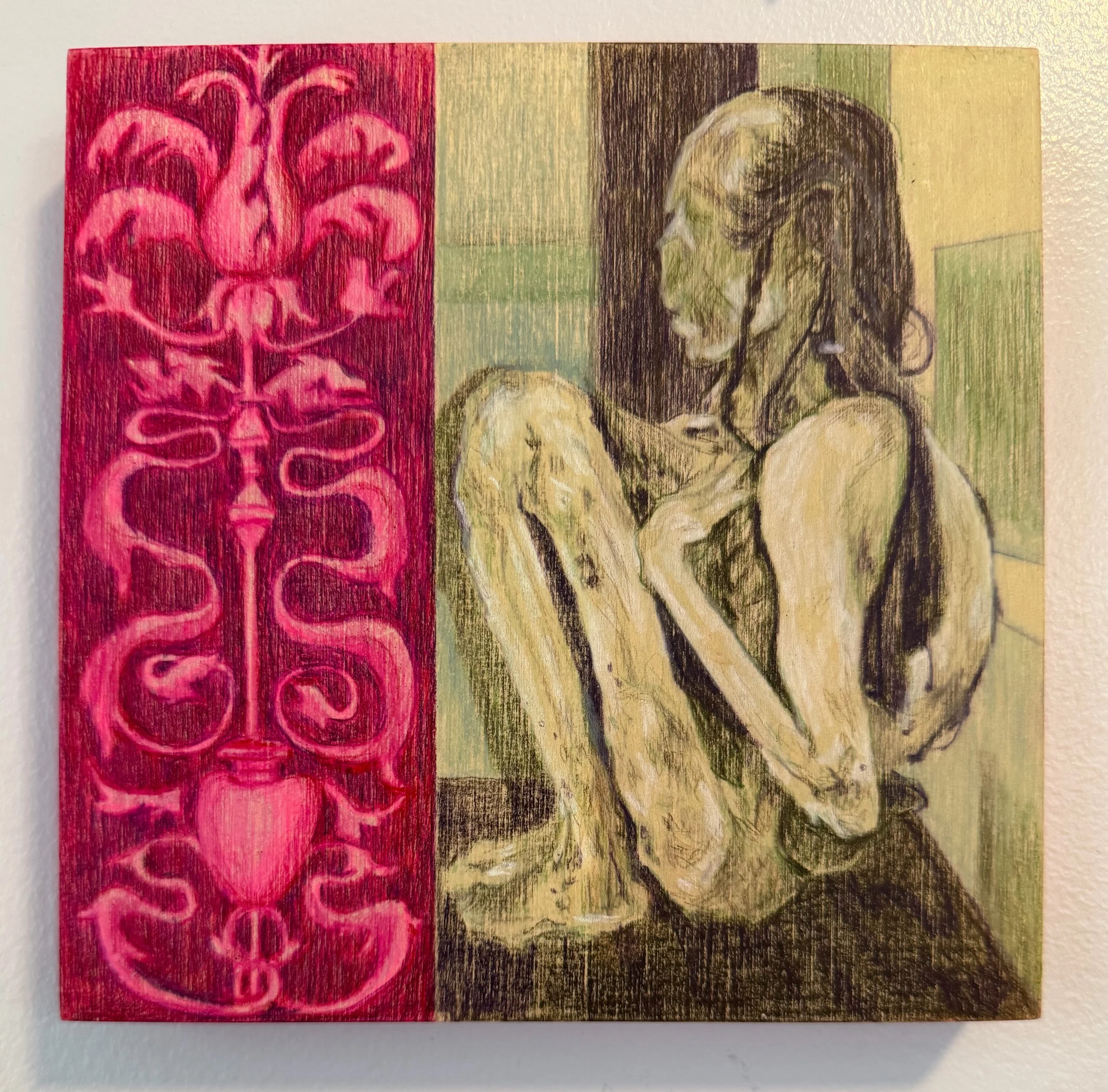 1000 Year Rest, 2025, colored pencil on cradled wood board, 4” x 4”. SOLD.