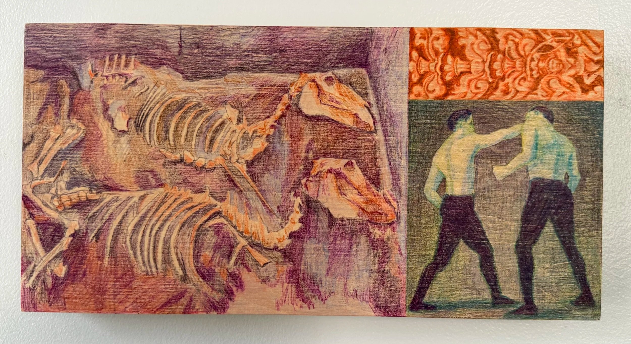 Paired (How to Land A Blow), 2026, colored pencil on cradled wood board, 6” x 12”. SOLD.